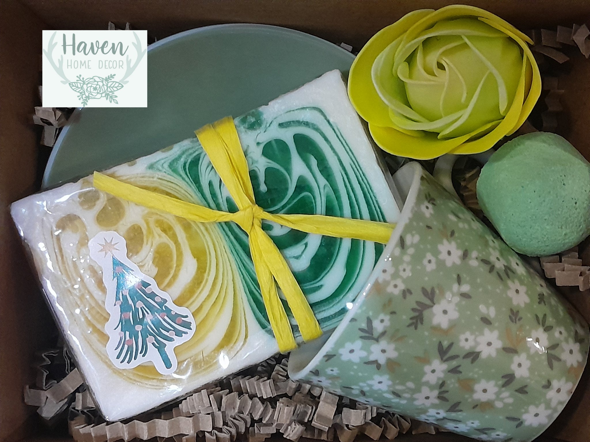 ** gift boxes are sealed with matching coloured ribbons & finished off with bow & tag / labels