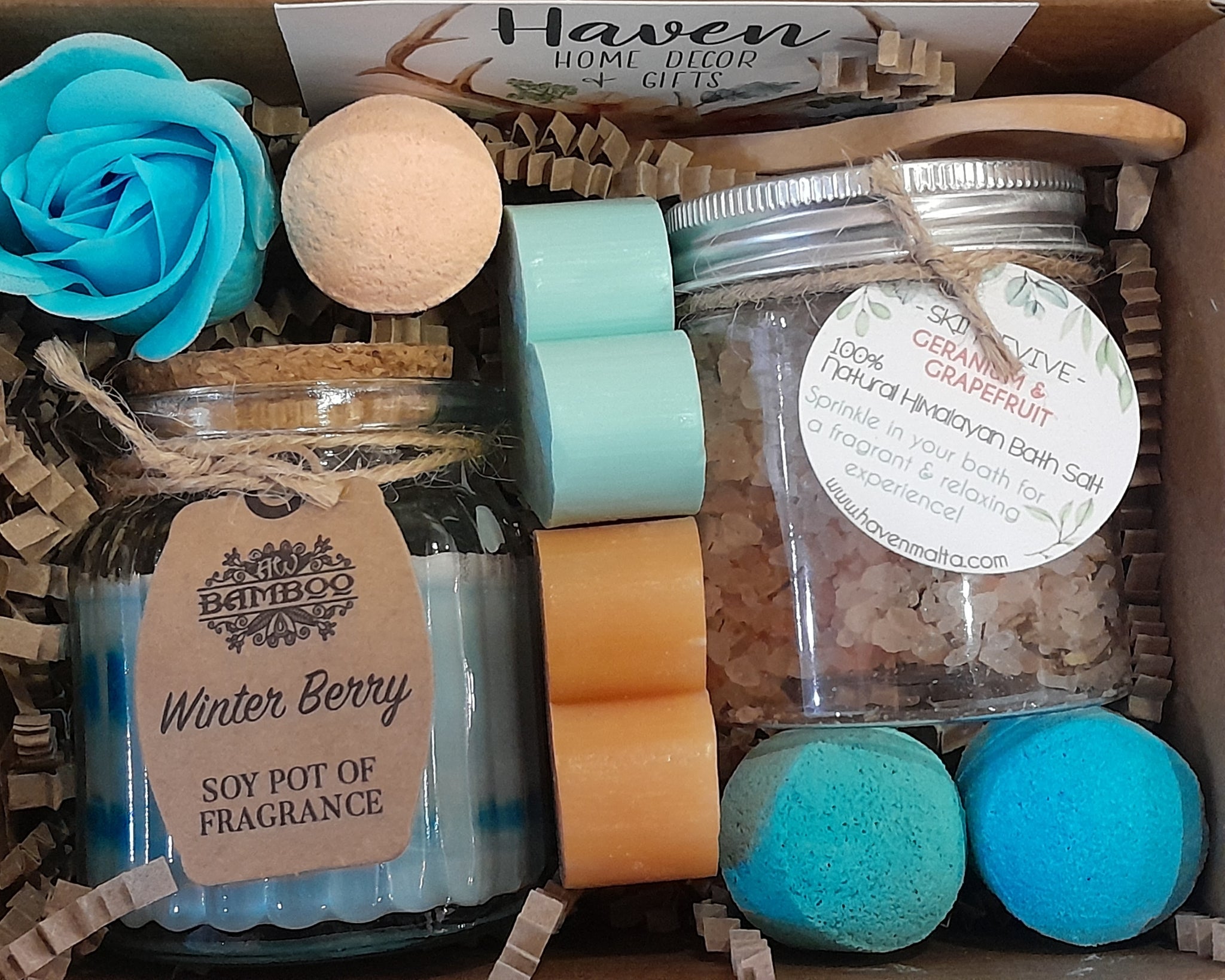 ** gift boxes are sealed with matching coloured ribbons & finished off with bow & tag / labels