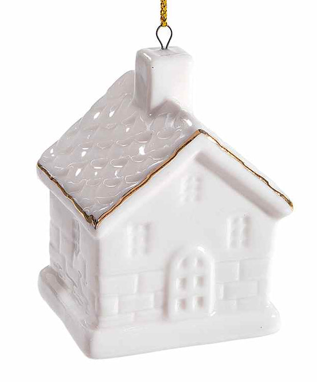 - an elegant, porcelain house-shaped hanging ornament with fine gold-coloured detailing
